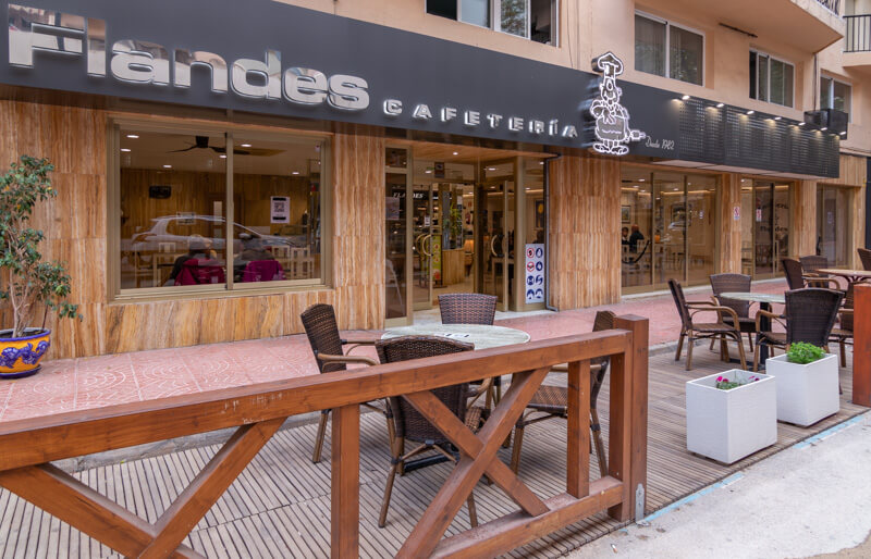 Cafetería Flandes lleva desde 1982 en Calpe. Gerard Loyson y Jacqueline Bogaert empezaron una pequeña panadería, pastelería y cafetería sirviendo, sobretodo especialidades Belgas. Hoy en día aparte de sus especialidades Belgas es muy conocido por sus desayunos servido con un buen café, crepes, gofres de Bruselas y muy buenos batidos de helado. Hay una gran variedad de Bocadillos y como no cervezas Belgas. También se pueden comer platos combinados o una ensalada. Todo esto servido en un amplio y comfortable local. Y como no, detrás de todo esto hay hoy en dia un fuerte equipo para darle el mejor servicio posible.